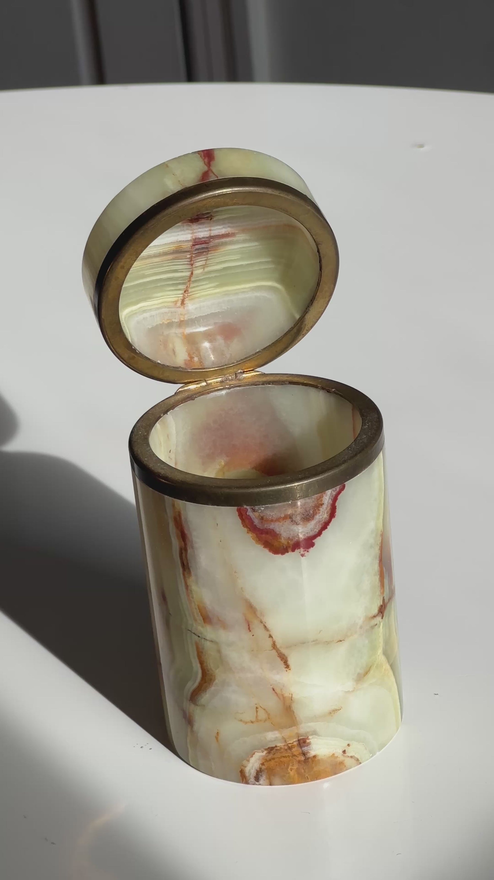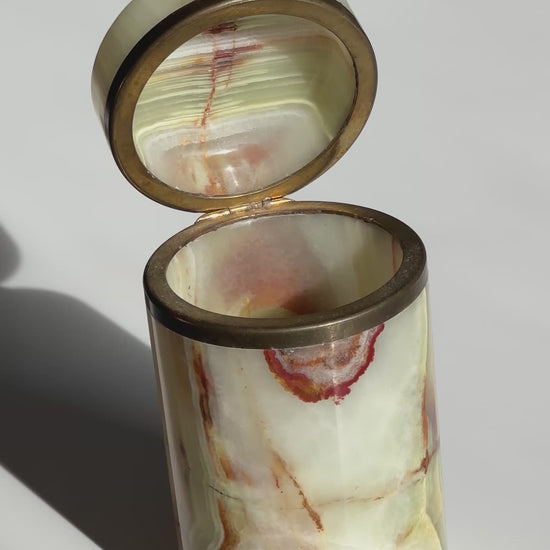 Vintage Mid-Century Lidded Onyx Jar with Brass Trim